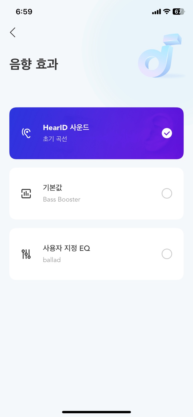 - HearID 사운드 효과(청력 테스트를 통해 음향 효과를 만듬) 만족하고 사용중입니다.(앱에서 설정 가능)
